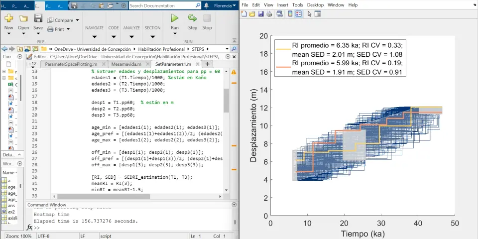 Durante las primeras semanas, el trabajo de adaptación del código fue arduo, dado que la implementación del código para la Falla Mesamávida supuso varios desafíos. “A la tercera semana, ya pudimos correr el programa sin problemas y comenzar a discutir los resultados que se estaban obteniendo, por lo que estuvimos muy bien con los tiempos de la estadía”, detalló Florencia.